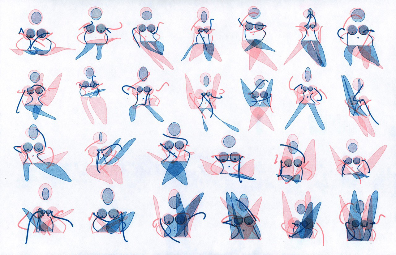 I created two figures and every part of them is generative - size, position, and pose. Overlapping the two figures, I try to present a kind of dissonance between the two sides/mindsets within one person, or it can be seen as the inability to sync with another person.